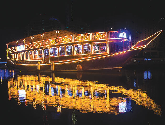 Our Dhow cruise offers in house entertainment while you are served with scrumptious meal of both Arabic and multinational cuisines to suit every palate. So no matter whether you are looking to host a private party for your whole company or a romantic dinner for two, we are sure to provide you the ideal dhow that will match your needs.